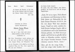 Eltern: August König u. Margarete geb. Vogt; ∞ 26.12.1922 Quirin Gottfried Blum; 2 Töchter; schmerzreiches Leiden (Großkönigsdorf) |