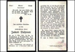 Gefallener 2. Weltkrieg; Ehefrau: Conradi Maria, ∞ am 24.08.1930; Kinder: 1; bei Fliegerangriff ums Leben gekommen |