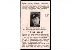 Gefallener 2. Weltkrieg; Eltern: Graf Josef und Müller Anna; Geschwister: 2; Im Juni 1943 starb der Vater |
