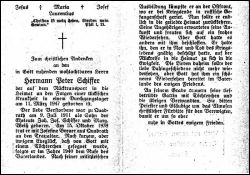 Gefallener 2. Weltkrieg; Eltern: Schiffer Johann Josef und Weiß Margarete; Ehefrau: Breuer Josefine, ∞ am 15.10.1939; Kinder: 1; Ehefrau aus Quadrath; Er starb in einem Durchgangs Lager auf dem Weg nach Hause an einer tückischen Krankheit |