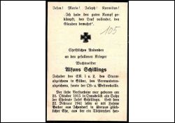 Gefallener 2. Weltkrieg; Vater: Schilling Josef; Ehefrau: Becker Helene, ∞ am 22.02.1941; Kinder: 1; Ehefrau aus Ichendorf |