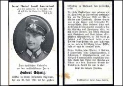 Gefallener 2. Weltkrieg; Schwestern: 3; Brüder: 3; Ehefrau: Müller Maria, ∞ am 25.02.1940; Ehefrau aus Quadrath |