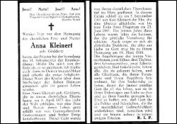∞ 5.9.1901 Karl Kleinert, † 23.6.1945; 5 überlebende Kinder; in den letzten Jahren schweres Leiden |