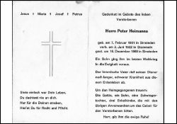 ∞ 2.6.1922 in Stommeln; 1 überlebender Sohn, 1 Sohn im 2. Weltkrieg gefallen; lange, schwere Krankheit |