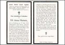 Fräulein; seit 66 J. im Haushalt einer Familie tätig; Mitarbeiterin der Missionshäuder Knechtsteden und Steyl |
