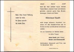 58 J.; lange Krankheit; ∞ Anna Knauf; Kinder; Angehörige in: Schönecken, Seiwerath, Trier |