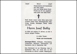 Fast 77 J.; Wohnort Dhron; Angehörige in: Neumagen-Dhron, Dillingen, Braunebaerg, Trittenheim, Markdorf, Helmbrechts, Gerolstein |