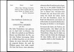 ∞ 25.5.1912 Wilhelm Meurer aus Köln-Rath; 1 Tochter; schwere, schmervolle Krankheit (Druck in Frechen) |