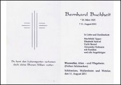 Wohnort: Schönecken; zuletzt Alten- u. Pflegeheim in Waxweiler; Angehörige in Schönecken, Wallersheim, Wetzlar |