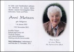 Metzen, geb. Hellgrewe | Vorname: |