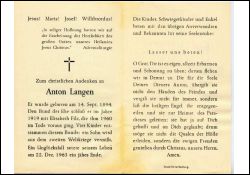 Tod durch Unglücksfall; ∞ 1919 Elisabeth Filz, † 1960; 4 K.; 1 Sohn im 2. Weltkrieg vermisst; Druck in Bedburg/Erft |