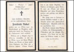 ∞ 4.3.1919 Anna Maria Broich aus Bedburg-Broich; 3 K.; verstarb nach Unfall in Fortuna nach 3 Wochen Krankenlager; Druck in Bedburg |