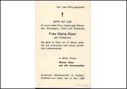 73J. ; ∞ Werner Staar; Wohnort:Andernach; Angehörige in: Koblenz, Gladbach, Urbar |