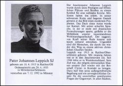Jesuitenpater; Eintritt in Jesuitenorden 29.4.1935; seit 1946 in Westdeutschland; faszinierte Millionen durch seine Predigten auf öffentlichen Plätzen |