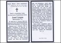 Malermeister i. R.; ∞ 21.11.1902 Therese Klepper, früh † ; 5 K.; gestaltete manche Kirche durch seine Kunst; 2 Söhne im 2. Weltkrieg gefallen; |