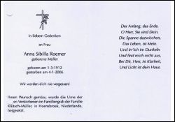 Ihre Urne wurde im Familiengrab Klütsch-Müller in Hoensbroek NL beigesetzt. |