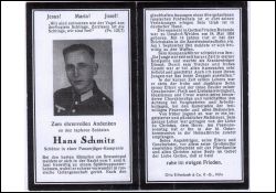 Gefallener 2. Weltkrieg; in der Nacht 7./8.6. (1942) verwundet, in russ. Gefangenschaft kurz darauf †; Assistentenlaufbahn b. d. Reichsbahn; 1.9.1941 freiw. zu den Waffen; Druck in Köln |