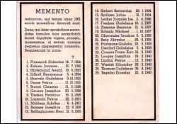 Gemeinsamer Totenzettel für die verstorbenen Confratres des Weihejahrgangs 1901: Hubert Firmenich † 14.7.1904; Johann Kehren † 21.7.1916; Ägidius Hildebrand † 19.6.1923; Hermann Erlhoff † 5.4.1924;Wilhelm Hoevels † 9.10.1925; Peter Deuß † 21.10.1925; Clemens Breuer † 31.3.1928; Josef Geusen † 20.5.1928; Heinrich Theisen † 19.2.1929; Peter Lassaulx † 22.3.1931; Adolf Mühlens † 6.4.1931; Josef Hannes † 22.8.1931; Heinrich Bellinghausen † 12.6.1933; Bernhard Siebert † 29.1.1934; Julius Spölgen † 31.7.1934; Johann Josef Lecher † 2.4.1936; Wilhelm Frenken † 10.5.1937; Heinrich Ziemons † 12.6.1937; Michael Schmitz † 1.10.1937; Jakob Oberreuter † 3.3.1938; Aloys Berg † 29.9.1938; Wilhelm Hartmann † 22.3.1939; Wilhelm Dierdorf † 3.4.1939; Franz Xaver Coenen † 16.2.1940; Josef L∞gen † 24.2.1940: Peter Lindlar † 13.3.1940; Eduard Wasiak † 28.3.1940; Wilhelm Thomae † 30.4.1940; Ernst Tegeder † 23.9.1940 |