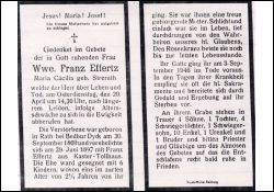 ∞ 29.6.1897 Franz Effertz aus Kaster-Tollhaus, † 3.9.1946; 6 K., davon 1 früh †; |