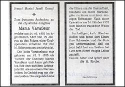Eltern: Martin Vavaßeur u. Anna geb. Nelles; seit 12. Lebensjahr Nervenleiden; Tod nach Kopfoperation; Druck in Bedburg/Erft |