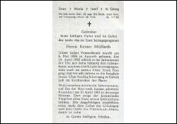 ∞ 24.4.1920 Sofia Schmitz, † vor 8 J.; 3 K., davon 1 früh †; Mitgl. Kirchenchor |