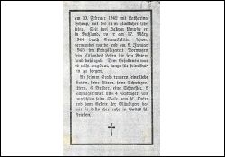 Gefallener 2. Weltkrieg; ∞ 10.2.1942 Katharina Sch∞p; seit 3 J. kämpfte er in Russland, dort am 17.3.1944 schwer verwundet; Wohnort: Epprath |