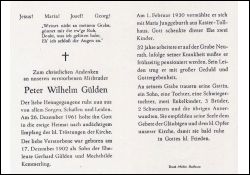 Eltern: Gerhard Gülden u. Mechthilde geb. Kemmerling; ∞ 1.2.1930 Maria Junggeburth aus Kaster-Tollhaus; 2 K.; 32 J. auf Grube Neurath beschäftigt; wegen Krankheit frühzeitig pensioniert; Wohnort: Kaster-Tollhaus |