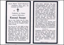 ∞ 27.10.1911 Maria Peschkes, † 1919; 5 K.; 1 Sohn im 1. Weltkrieg in Russland vermisst; ∞ Elisabeth Peschkes, der Schwester seiner 1. Frau; auf der Grube Neurath beschäftigt; seit mehreren Jahren schweres Asthmaleiden, deshalb Ruhestand; Leiden immer schlimmer; Wohnort: Epprath |