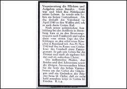 Gefallener 2. Weltkrieg; Einberufung April 1940; zunächst in Frankreich eingesetzt, dann im Osten |