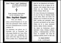 ∞ 1876 Anton Metzmacher, † 1878; ∞ 11.9.1880 Engelbert Käppler, † 30.12.1932; 4 K. |