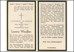 Eltern: Gottfried Weuffen u. Maria Magdalena geb. Willkomm; ∞ 28.10.1921 Margarete Gormanns aus Immerath; kinderlos; Adoption eines Kindes; Druck inm Bedburg/Erft |