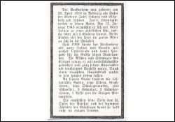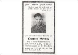 Gefallener 2. Weltkrieg; Eltern: Josef Schmitz u. Elisabeth geb. Lehnen; verlor Vater mit 5 J.; ∞ 12.1.1943 Greti Heinen; 2 K.; seit 1939 Soldat; Tod durch Unglücksfall |