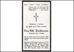 ∞ in Niederembt 13.8.1905 Nikolaus Dreikhausen; 7 K., davon 2 früh †; Druck in Bedburg/Erft |