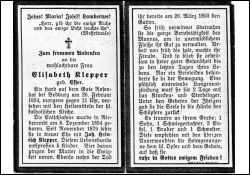 ∞ Nov. 1879 Johann Heinrich Klepper, † 26.3.1893; 5 K., davon 4 †; verwaltete ihr Gut; Beinleiden |