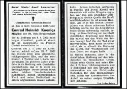 ∞ 23.7.1921 Helene Dick; 2 K.; gründete 1921 in Bedburg sein Geschäftsunternehmen; in den letzten Jahren leidend: Amputation beider Beine |