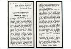 ∞ in Büttgen 7.10.1924 Gottfried Postels; 1 Tochter, 10 T. nach Geburt †; Unglücksfall führte zu schwerer Herzaffektion; 2 Wochen Krankenhaus Bedburg; Druck in Bedburg/Erft |