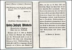Gefallener 2. Weltkrieg; Eltern: Johann Winkels u. Ida geb. Wildenhoff; nach Gesellenprüfung am 21.10.1942 zur Luftwaffe nach Wien eingezogen; kämpfte in Italien, zuletzt im Osten |