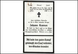Gefallener 2. Weltkrieg; ∞ 9.6.1930 Katharina Kieven; 3 K.; Tochter Gertrud mit 13 J. †; August 1939 Einberufung; Feldzüge in Frankreich u. Russland; 26.8.1944 b. Tyraspol (Rumänien) in Gefangenschaft |