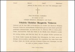 Fräulein; Eltern: Heinrich Viehoven u. Katharina geb. Fischermann; Druck in Bedburg/Erft |