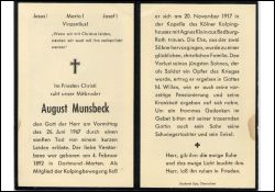 Mitgl. Kolpingbewegung; ∞ 20.11.1917 Agnes Klein aus Bedburg-Rath; 2 Söhne; 1 Sohn im 2. Weltkrieg gefallen; Druck in Oberaußem |