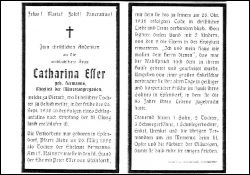Starb bei Besuch ihrer Tochter; ∞ 17.5.1879 Peter Esser von Steinforth, † 28.10.1932; 5 K., davon 2 †; lebte zuletzt bei Sohn in Epsendorf |