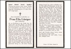Eltern: Josef Hollender u. Gertrud geb. Hesch; ∞ 20.5.1905 Wilhelm Lüniger aus Köln-Roggendorf, † 15.7.1913; 5 K.; in den letzten Jahren schweres Herzleiden |
