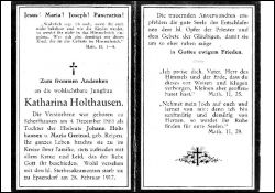 Jungfrau; Eltern: Johann Holthausen u. Maria Gertrud geb. Reipen |