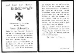 Gefallener 2. Weltkrieg; Eltern: Peter Josef Holzweiler u. Anna Maria geb. Kuhlewind; Frühjahr 1941 Einberufung; |