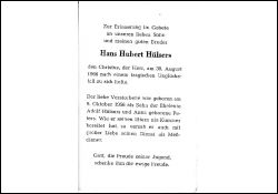Tod durch Unglücksfall; Eltern:Adolf Hülsers u. Anna geb. Peters; Messdiener |