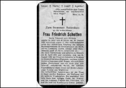 Herzlähmung; ∞ 25.8.1906 Friedrich Schotten aus Straberg; 7 gemeinsame Kinder u. 2 Stiefsöhne |