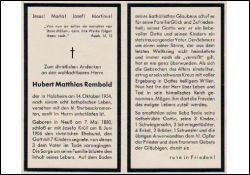 ∞ 8.6.1906 Josefa Krüll; 7 K., davon 3 †, davon 1 Sohn im 2. Weltkrieg gefallen; Gebrechen des Alters |