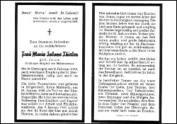 Eltern: Martin Jates u. Katharina geb. Vemoville; mit 9 J. Vollwaise; ∞ 7.1.1912 Jakob Thielen; 4 K., davon 1 früh †; seit 3 J. ans Haus gefesselt; |