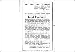 Bauunternehmer in Farzemich bei Odenthal; Eltern: Peter Kaesbach u. Gertrud geb. Heidkamp; ∞ 9.8.1924 Maria Esser aus Fühlingen; 2 K.; schmerzliche, schleichende Krankheit |