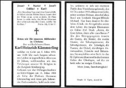 Langes,schweres Leiden; Eltern: Hermann Kämmerling u. Anna geb. Schneider; früh mutterlos, bald auch vaterlos; Versicherungskaufmann; ∞ 13.12.1952 in Gohr Liesbeth Margot Elfriede Michael; Kriegsleiden setzte seinem Leben ein frühes Ende (Opfer 2. Weltkrieg); |